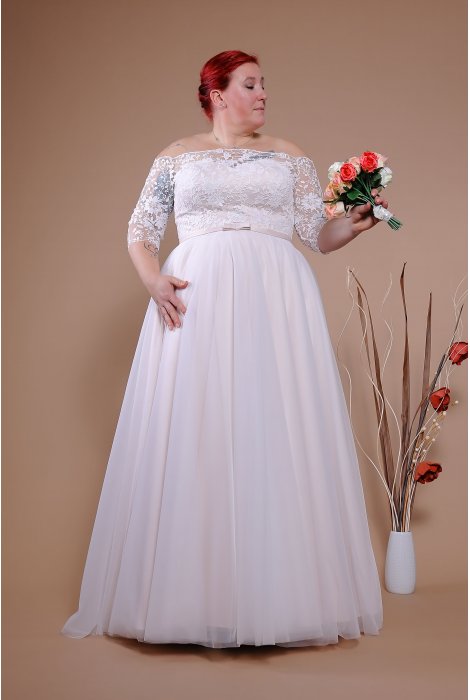 Dieses extravagante Brautkleid (für große Größen) aus unserer XXL-Kollektion ist die perfekte Wahl für alle zukünftigen Bräute, die einen dramatischen und dennoch romantischen Brautlook für ihren großen Tag suchen.